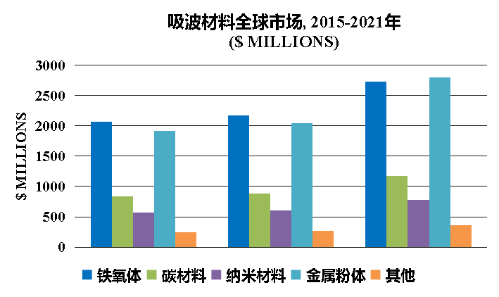 2021年全球民用吸波材料产值将超过80亿美元,5G等技术推广需求高频、薄层和导热吸波材料,为新型高性能吸波材料提供市场机遇。