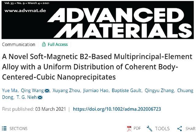 标题:大工在软磁高熵合金领域取得突破性进展