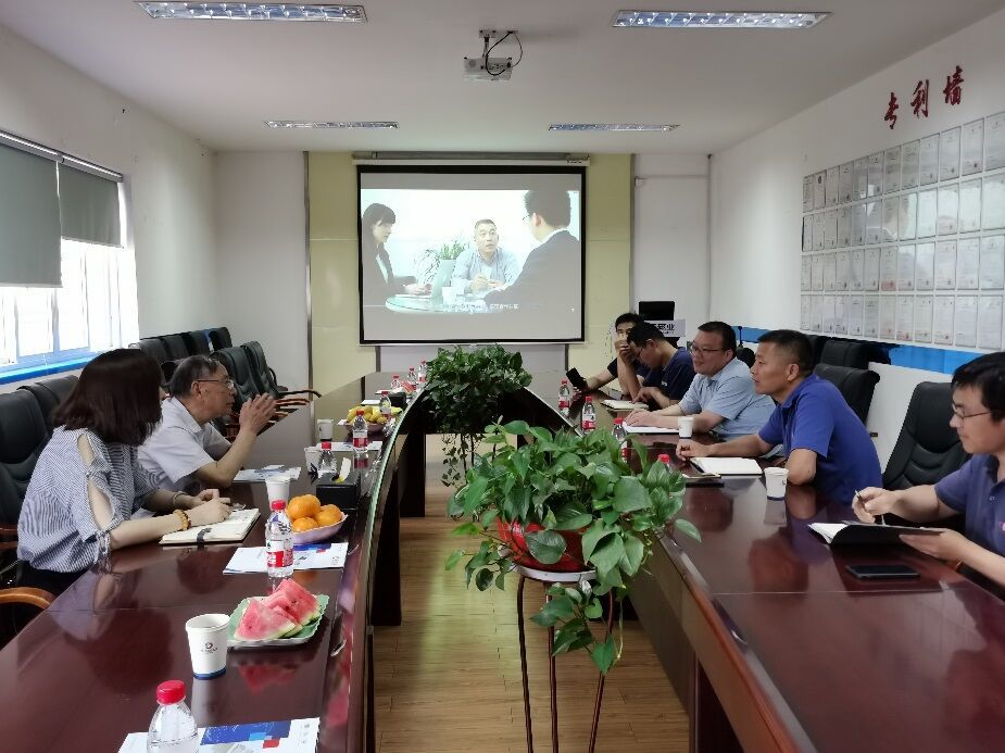 陈威总经理向来访的都院士介绍了企业的整体运行情况和发展进程,对目前磁性材料行业的整体市场现状做了综合阐述,并重点介绍了企业升级转型中在数字化和智能化上的应用。表达了企业 “两化”建设发展上的决心。随后,贺琦军副总经理就企业团队组成、院校合作和晶界扩散、复合镀铝新技术做了详细的介绍。