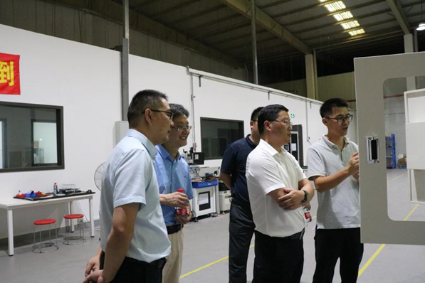 在磁产业中试基地,周方涛部长重点参观了电感项目组的中试线。总经理满其奎为周部长一行详细介绍了项目的研究进展以及中试线的建设情况。周方涛部长对中心自行研发的设备及产品表示肯定,同时指出创新中心需要集聚更多高端人才,攻克更多“卡脖子”难题,积极助力科技应用、产业深化与创新驱动等工作,加强与各方资源的精诚合作、互利共赢,推动磁性材料成果转化与产业对接。