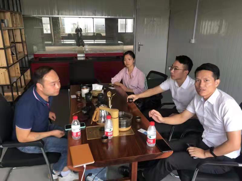 经商会牵线, 9月3日泰隆银行余姚丈亭支行一行与宁波科荣磁业有限公司负责人在企业会议室座谈交流,公司董事长王小强与泰隆银行支行行长岑旺辉以及其机构业务部负责人陈经理同往,磁性材料商会秘书处余夏辉陪同。