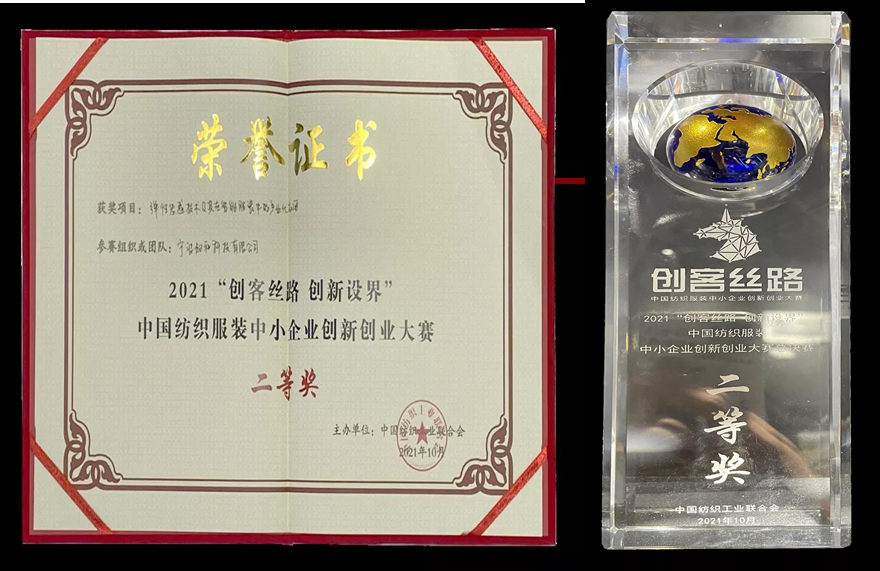 2021“创客丝路 创新设界”中国纺织服装中小企业创新创业大赛于2021年3月启动,韧和科技作为参赛者,过五关斩六将,最终在400多个参赛项目中脱颖而出,荣获二等奖。