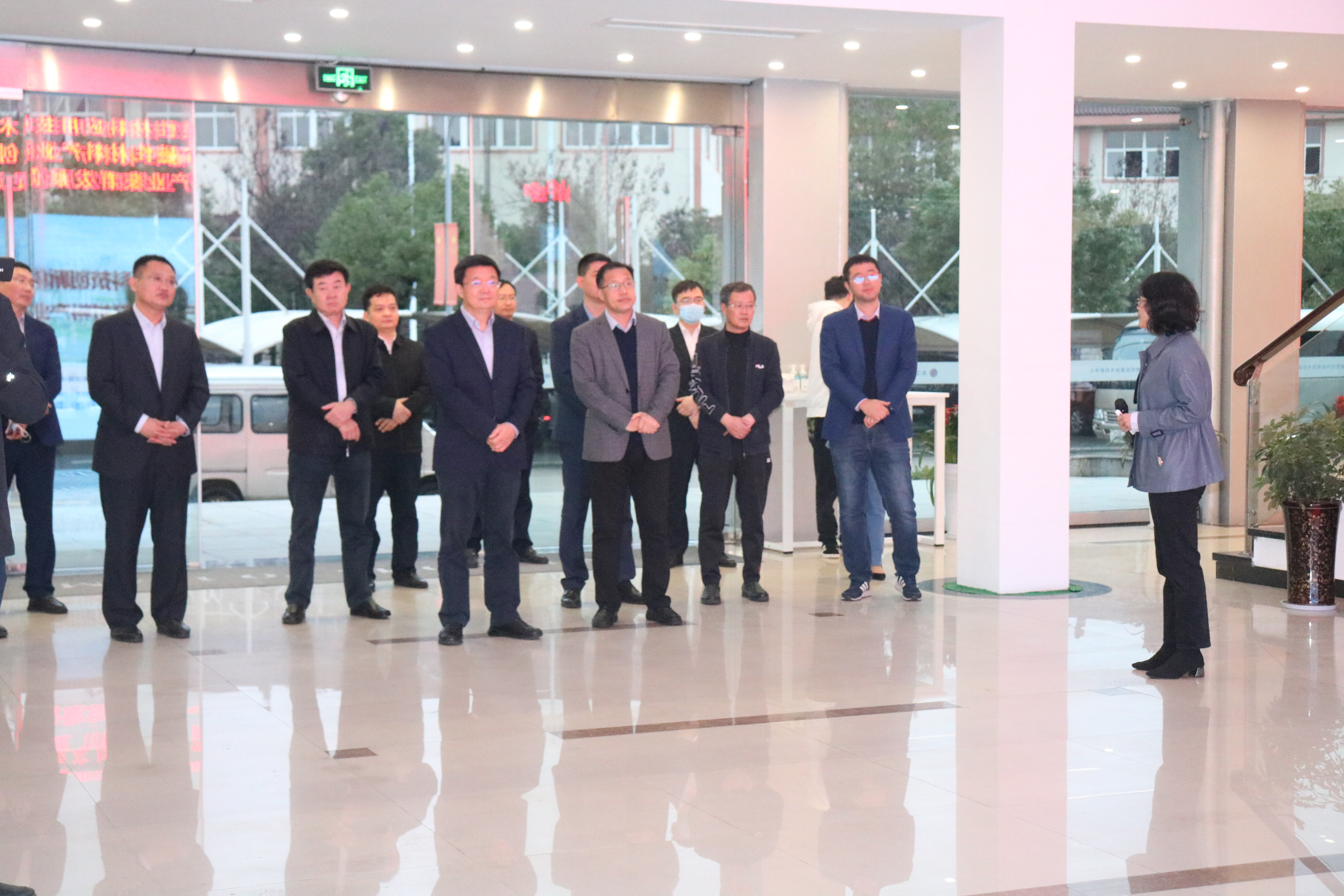 在中心展厅,副总经理胡海青对佘春明书记一行领导的莅临表示热烈欢迎,并详细介绍了公司的发展与未来规划,宁波材料所党委书记兼创新中心董事长李润伟着重介绍了“创新中心中试基地项目产业化”及“磁海甬动”系列活动整合磁产业上下游的相关情况。