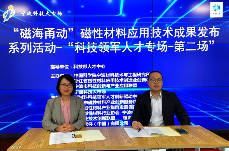 为落实“246”万千亿产业集群培育计划,推动各科研院所和高校以及各类产业技术研究院的科技成果转移转化,增强磁性材料产业的聚集效应和促进磁性材料应用技术相关成果落地,促进创新链、产业链、资金链的深度融合,2020年11月10日上午9:00--11:00,第二场“磁海甬动”磁性材料应用技术成果发布系列活动在宁波科技大市场三楼路演直播大厅成功举办。