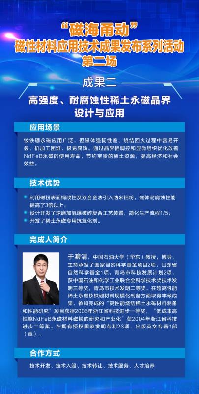 “磁海甬动”磁性材料应用技术成果发布系列活动,对接国家级高层次人才资源、聚焦磁性相关技术成果落地。活动视频可以在宁波科技大市场和镇海科技大市场等平台进行点播回放,所有发布后的系列成果也会在我们未来举办的各类论坛、活动中进行多次宣传,欢迎各企业与投资机构持续关注。