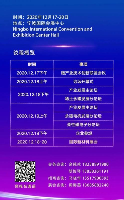 宁波复能新材料股份有限公司将参加2020年12月18日-20日第三届中国磁产业发展论坛暨2020中国(宁波)国际新材料科技与产业博览会!!!