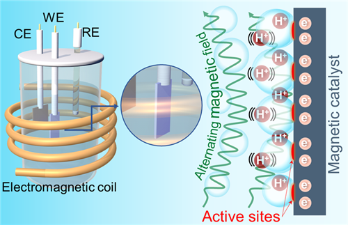 氢气作为清洁能源,在未来的能源版图中将发挥重要作用,电解水制氢具有成本较低、效率高、环境友好、安全性较好等优点,备受人们青睐。目前电催化析氢反应活性最好的固态催化剂是贵金属铂、钯、铱等,但贵金属储量稀少,价格昂贵,不适用于大规模生产。因此需开发廉价、高效的非贵金属析氢电催化剂。含有Fe、Co、Ni等磁性元素的催化剂表现出优异的催化活性、稳定性和价格优势,被认为是最有希望替代贵金属的催化剂之一。