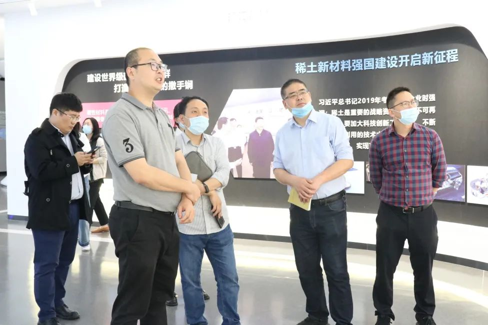 在中心大厅,伊总向毛局一行介绍了创新中心的建设背景、产业优势、工作重点、发展举措,以及磁性材料创新服务综合体通过“磁产业发展论坛”、高研班等系列主题活动整合磁产业上下游的相关情况,毛局对创新中心的发展给予了高度的评价。
