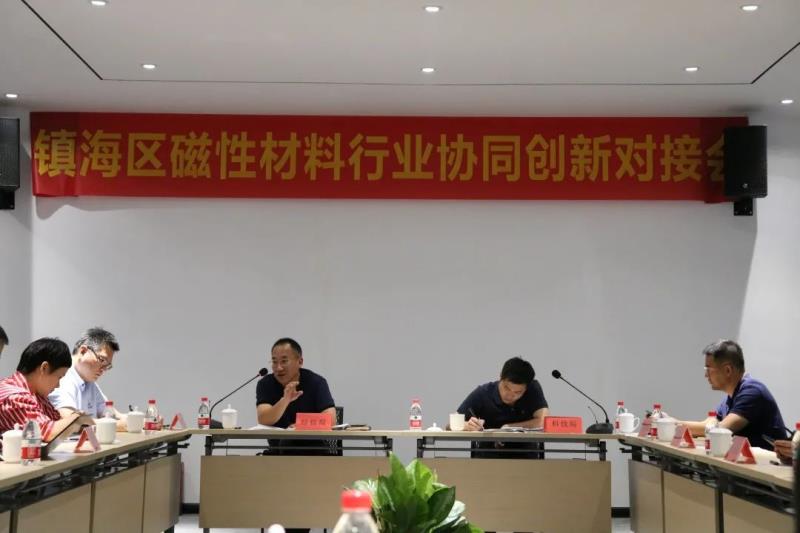 近日,镇海区磁性材料行业协同创新对接会在浙江省磁性材料应用技术创新中心举办,这是今年区经信局为强化产业链上下游协同合作,打造稳定而有竞争力的现代化产业链供应链,制定《产业链龙头企业系列对接活动方案》后而举办的镇海区的第一场产业链对接会。此次对接会由镇海区经信局党组成员、总经济师卢忠主持,会议邀请了区科技局等职能部门、创新中心等磁性材料产业科研机构及招宝磁业等12家区内磁性材料骨干企业参加。