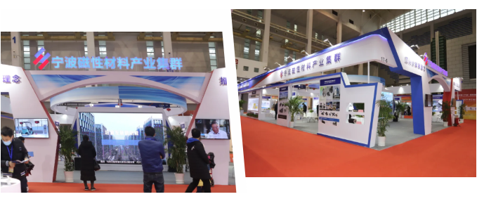 宁波磁性材料产业集群发展促进中心携宁波科宁达工业有限公司、宁波复能新材料股份有限公司、宁波永久磁业有限公司、中科(宁波)装备有限公司、宁波菲仕技术股份有限公司、宁波中科毕普拉斯新材料科技有限公司、宁波安信数控技术有限公司、宁波宁港永磁材料有限公司、宁波可可磁业股份有限公司、横店集团东磁股份有限公司、宁波晶飞新材料有限公司、百琪达智能科技(宁波)股份有限公司、奥克斯集团有限公司、宁波兴隆磁性技术有限公司、宁波韧和科技有限公司、宁波莱宝智能装备有限公司等16家企业集体亮相2020宁波国际新材料展。展区位于国际会展中心1号馆1T-6,展位面积近400平,通过不同元素组合,打造出“开放 创新 智慧 融合”的情景化视觉展览新模式。