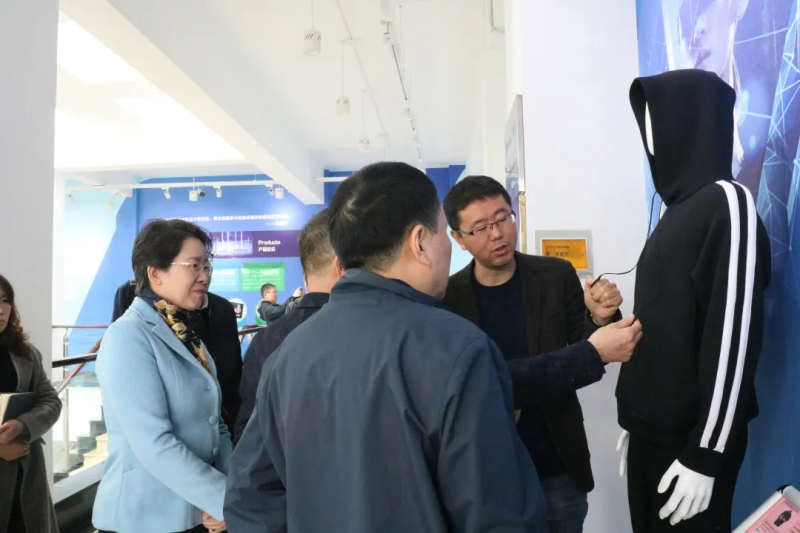 随后考察团参观宁波韧和科技有限公司,总经理刘宜伟介绍了弹性电子材料和器件的应用技术开发及其在智能服装、智能家居、智能体育、智慧医疗及智能机器人等领域的广泛应用场景。