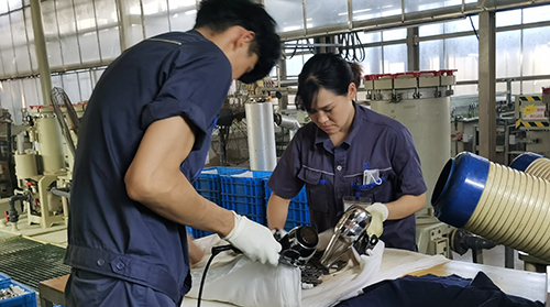 记者走访时看到,电镀线上员工们仍严格佩戴口罩和手套,按照作业流程及标准规范作业。汗水打湿了他们的头发、前胸、后背,但他们依然专注而忙碌。这一群群身影,是奋斗者的一个极佳注解。