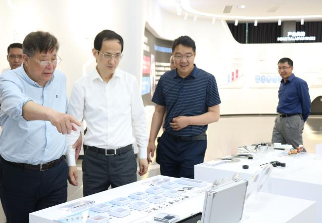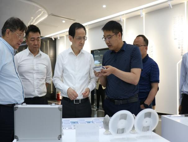 最后,张世方局长一行参观了磁产业集群展厅,了解产业化项目所研发攻关的电感用高性能低损耗的微细非晶粉末、微型模压电感等产品。