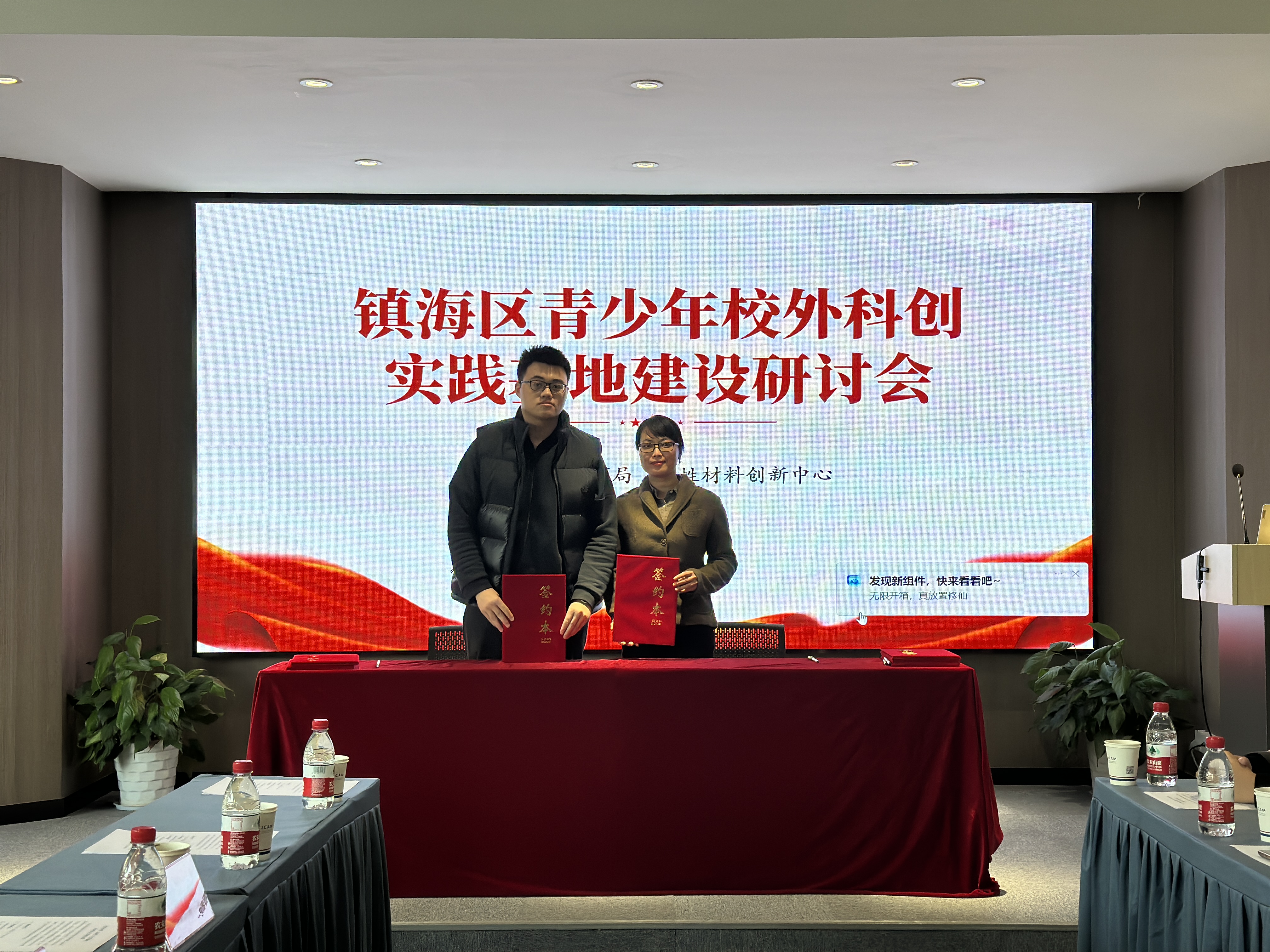 研讨交流期间,龙赛中学、仁爱初中、鲲池小学等三所学校与磁材创新中心签署了“校外科学(磁学)实践基地”结对协议书。经过对创新中心的参观和以往科普活动的介绍,镇海区教育局党委委员、副局长李瑛与其他教导员们共同肯定了在创新中心建设磁学实践基地的必要性与地域优越性,提出了空间布局、课程设置、研学方式等方面的意见和建议。