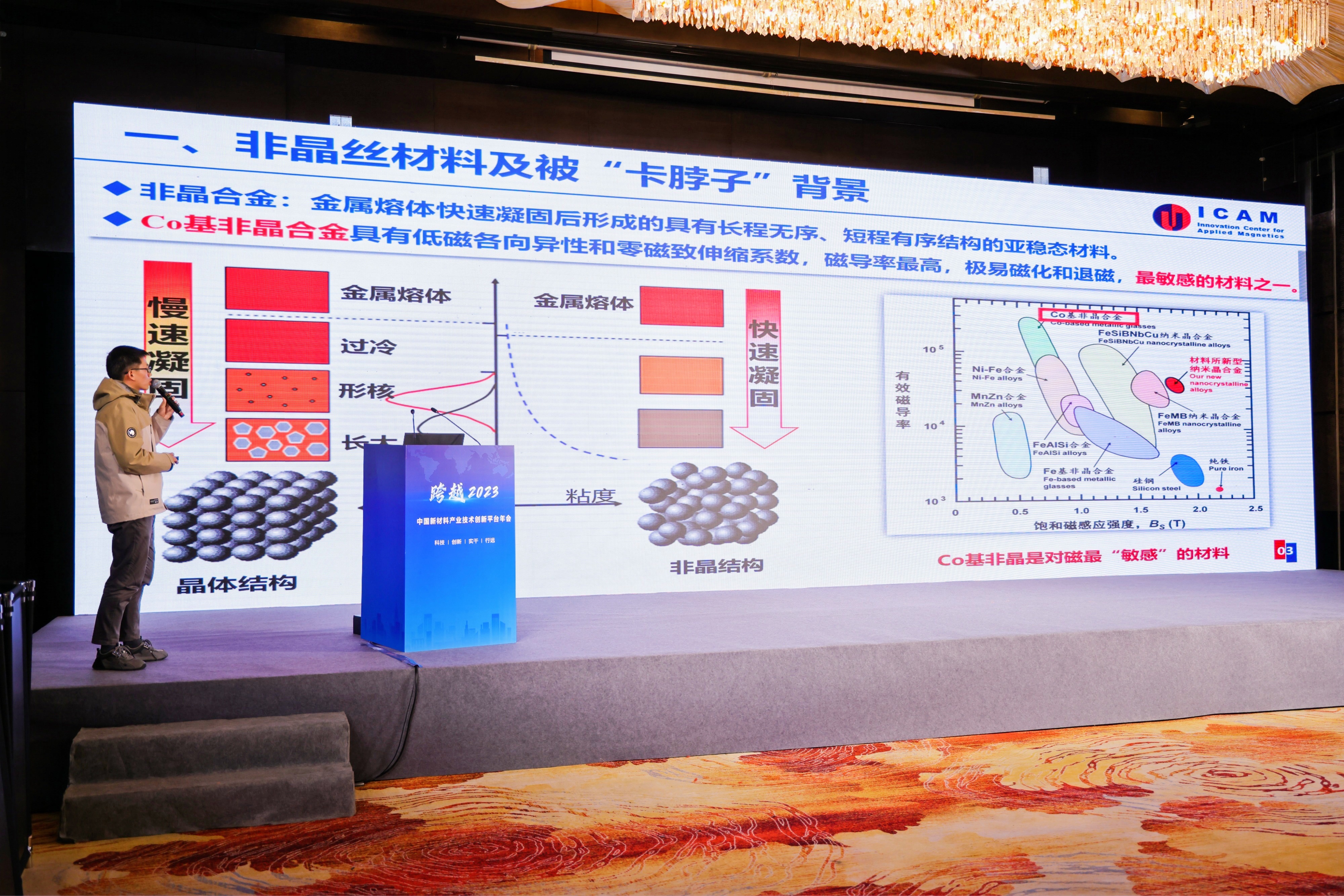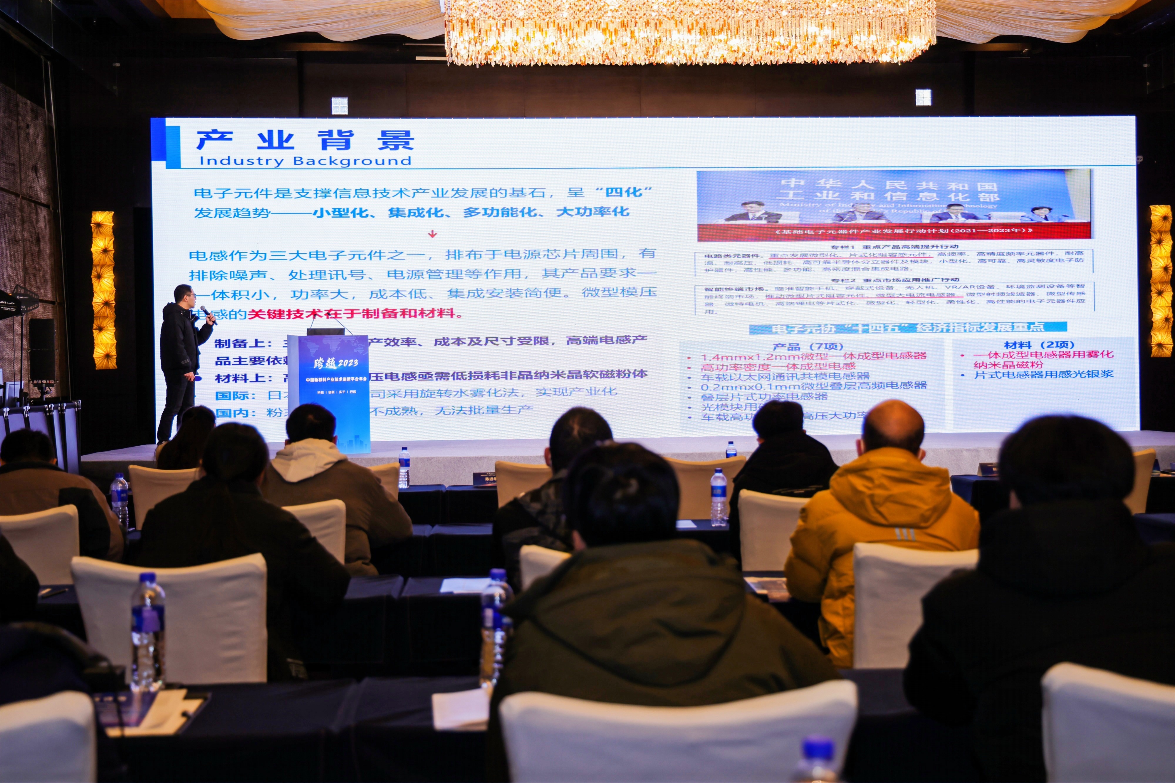 期间,中科院宁波材料所的胡本林老师讲述了《铁电材料的弹性化研究》的研究报告;陈进华老师(由刘威博士代讲)讲述了《特种高效高性能永磁电机系统》的研究报告;董亚强老师分享了《高端电子元件用非晶纳米晶软磁粉末研发、制备及应用》;黎嘉威老师(由朱方梁老师代讲)分享了《钴基非晶软磁合金丝材的制备及其磁传感技术应用介绍》;宁波磁性材料应用技术创新中心有限公司的王立诚工程师分享了《一体成型功率电感新技术路径》。