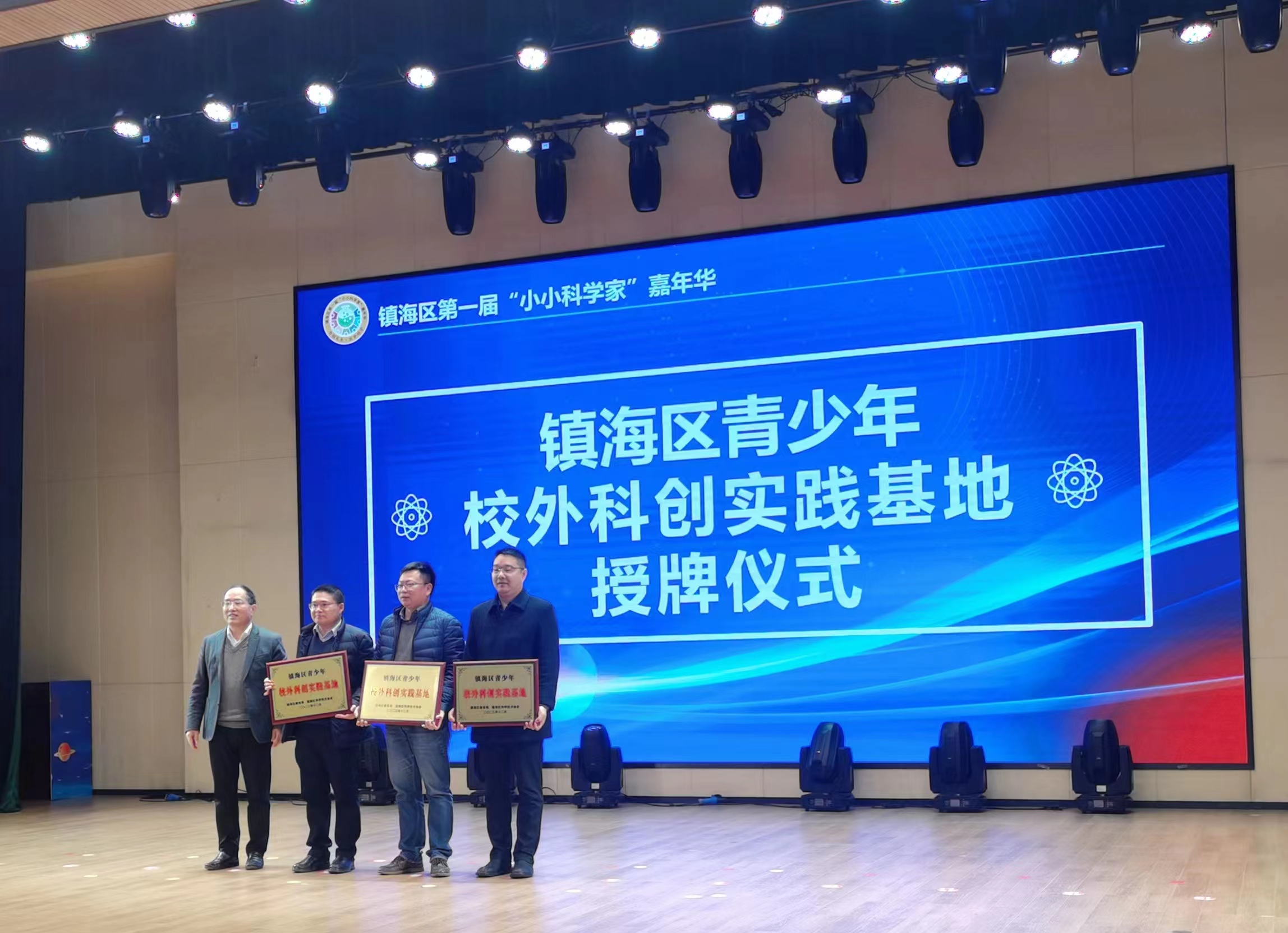 2023年12月26日,在崇正书院举办的镇海区第一届“小小科学家”嘉年华闭幕式上,满其奎总经理代表创新中心喜获一块新牌子,这是镇海区教育局、镇海区科协联合授予的首批“镇海区青少年校外科创实践基地”。