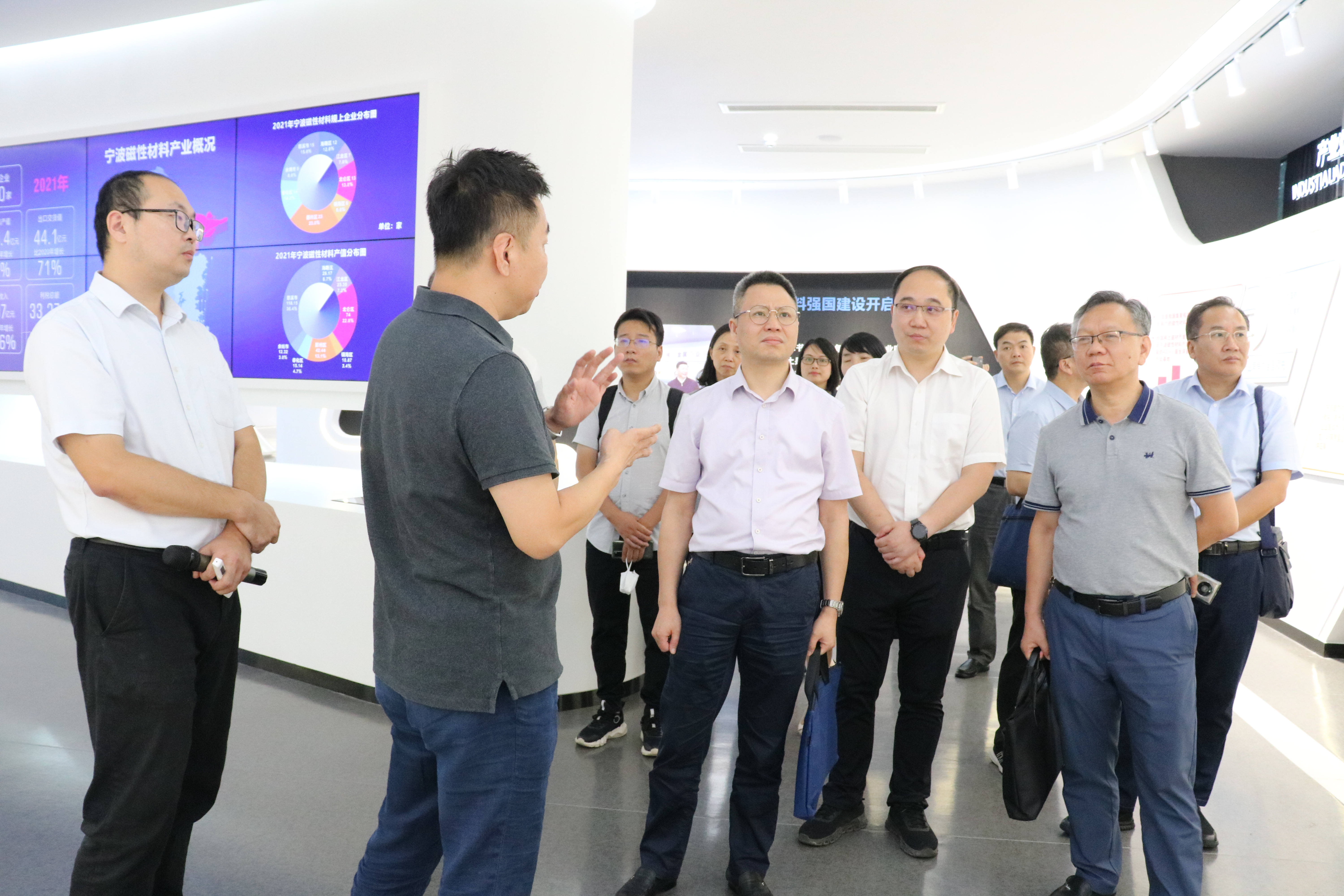 调研期间,听取了创新中心在建设运营、项目孵化、产品创新、人才集聚、入驻企业等方面成效汇报,在董事长门贺的介绍下也了解了宁波磁性材料产业集群的优势、重点培育工作、阶段发展目标等建设情况。督查组一行重点调研了创新中心在高质量发展上所做的工作及获得的成果,对产业化项目所研发攻关的软磁非晶合金丝及其高灵敏传感器开发、电感用高性能低损耗的微细非晶粉末等产品给予了高度肯定。