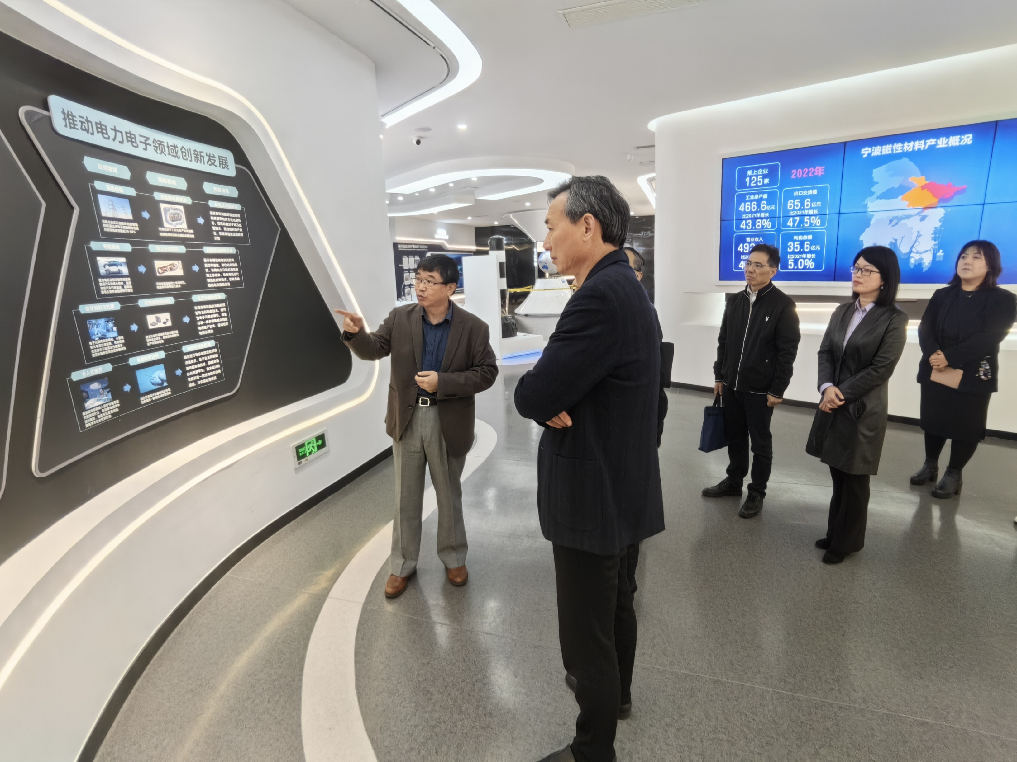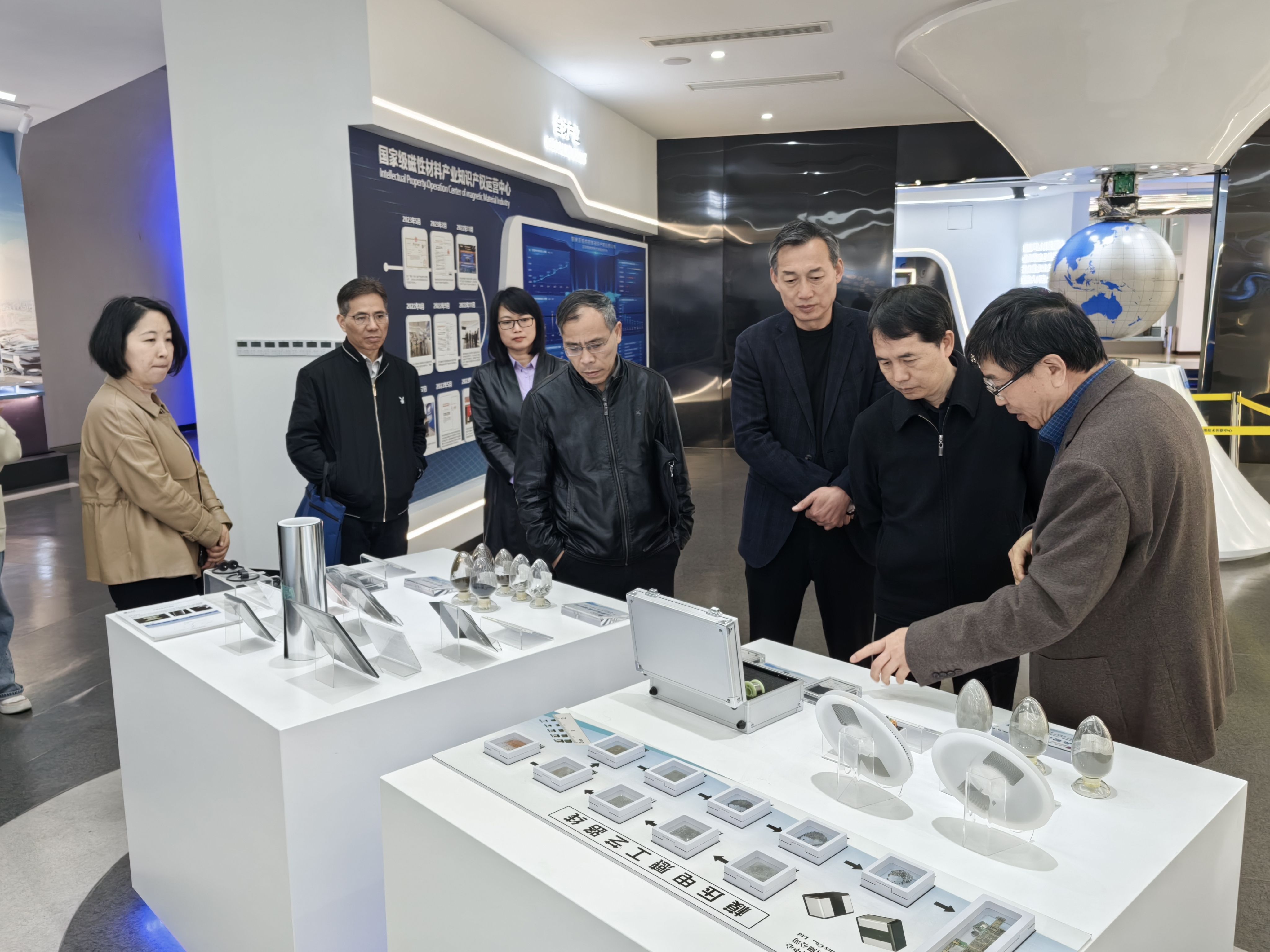 区政协领导一行参观了宁波磁性材料产业集群展厅,在高级顾问苏晓光的介绍下,对中心的创业历程、研发攻关以及集群发展等情况有了一定了解。