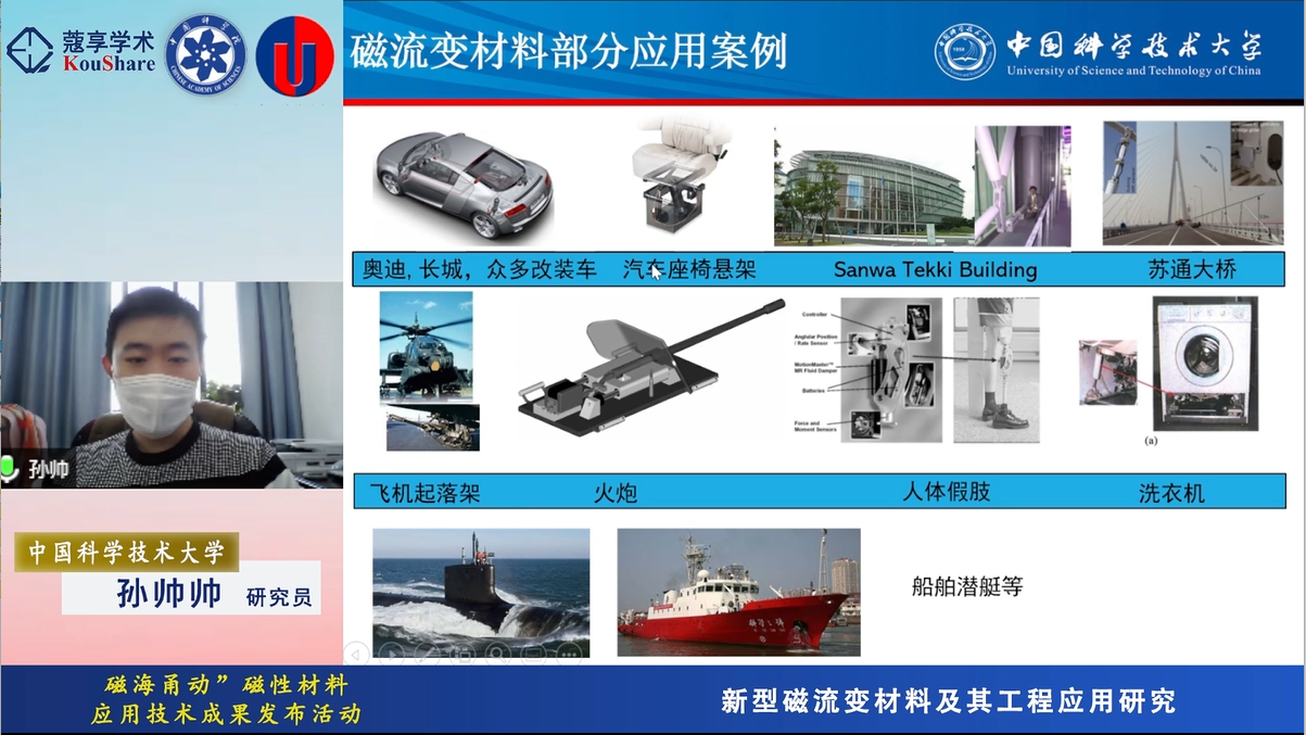 孙帅帅研究员分享了题为“新型磁流变材料及其工程应用研究”的报告。其团队研发的磁流变材料是一类由软磁颗粒悬浮在液体或弹性体中形成的一种智能可控材料,主要包括磁流变液和磁流变弹性体。磁流变材料具有可逆性好、响应速度非常快(毫秒级别)、控制参数简单等优点。因其快速可控性能,孙帅帅团队已将磁流变材料广泛应用于智能可控器件,并成功应用到汽车、高速列车、机器人等高新技术领域,具有重要应用价值和市场前景。