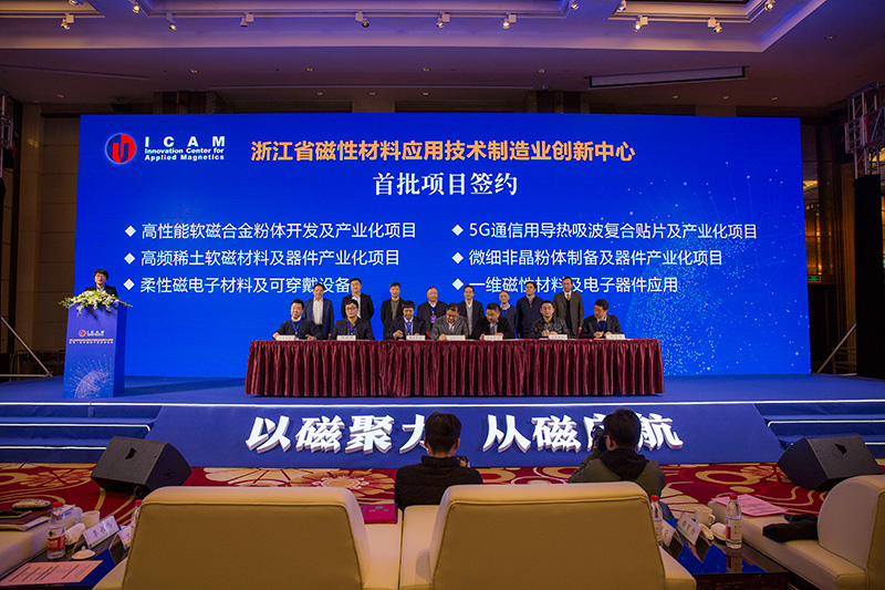 这次签约仪式上,共有前瞻布局项目、产业化项目和技术攻关项目三个方面六项代表性项目进行了首批入驻项目签约,这些项目内容涵盖5G通信、柔性可穿戴终端、节能环保,节能环保等多个磁性材料重要应用领域。