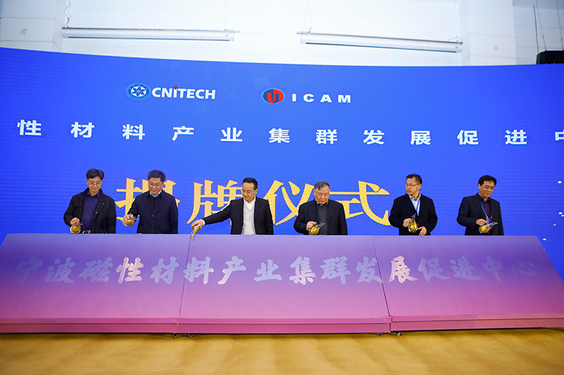 开幕式同时举行了“宁波磁性材料产业集群发展促进中心”揭牌仪式。促进中心在宁波市政府领导下,依托中科院宁波材料所成立,并在工信部组织的2020年先进制造业集群竞赛中优势胜出,面向宁波及国家磁性材料产业重大需求为目标,通过沟通交流、协同管理、监督激励和对外合作等方式,促进磁性材料产业高质量发展。